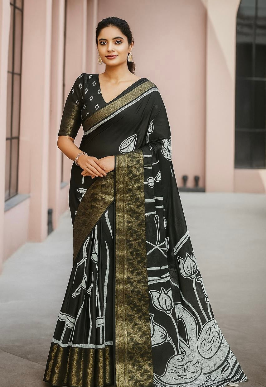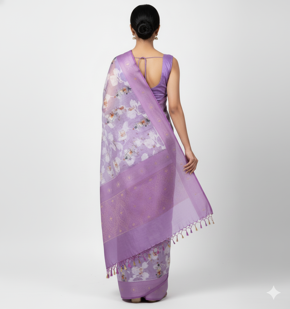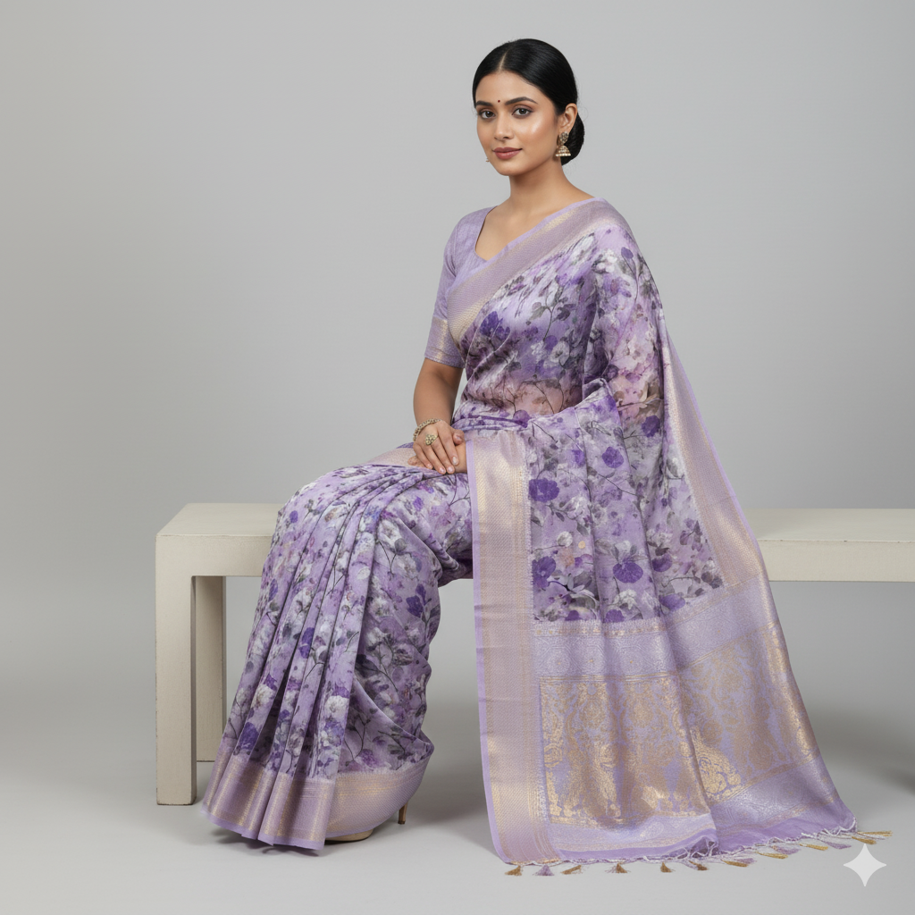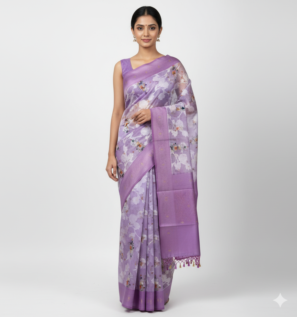 LUCKNAVI DIGITAL SILK SAREE