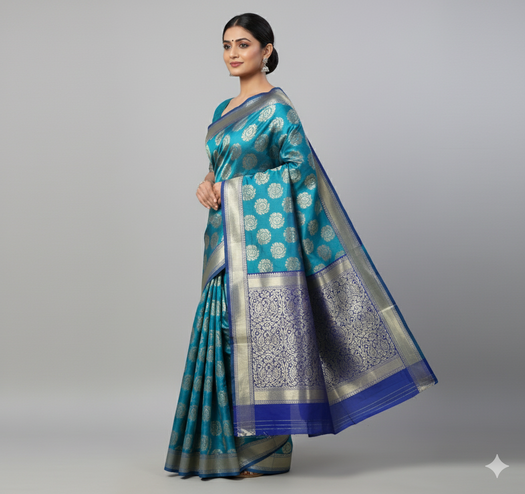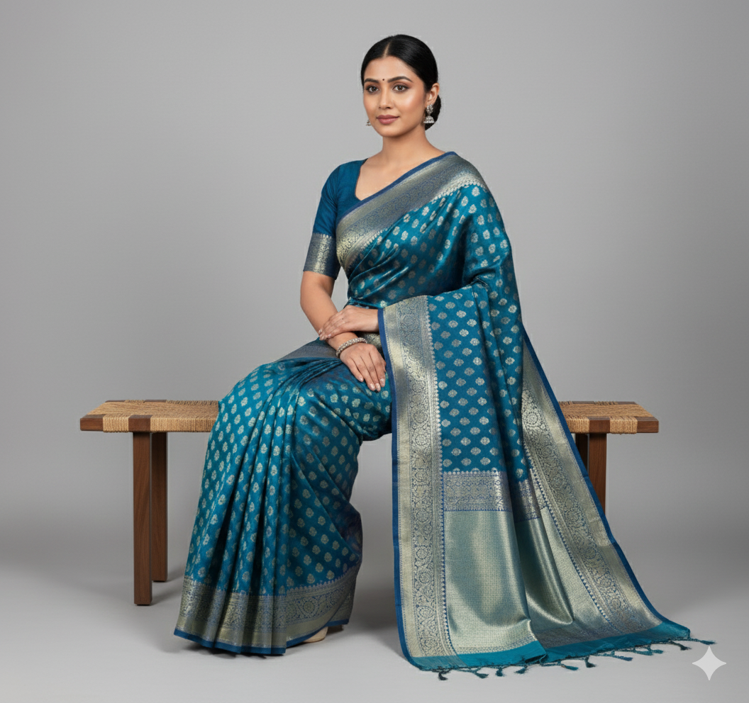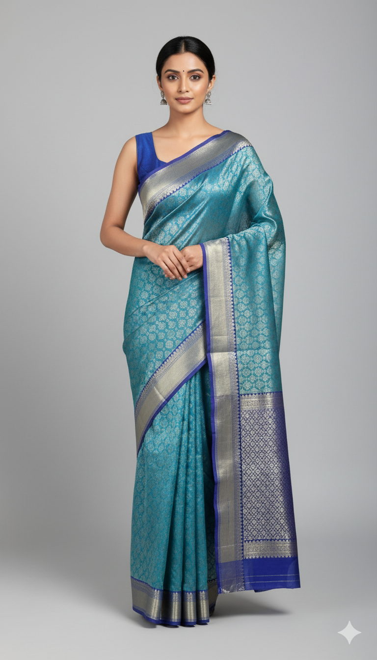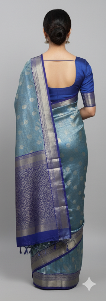 PREMIUM BLUE TISSUE SILK SAREE